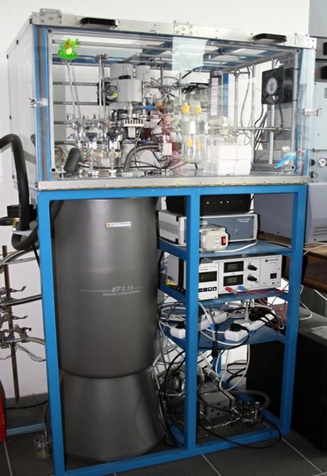 Volumetric vacuum adsorption apparatus for investigation of adsorption equilibrium combined with Low-temperature Tian-Calvet Microcalorimetr BT2.15 (Setaram, France)