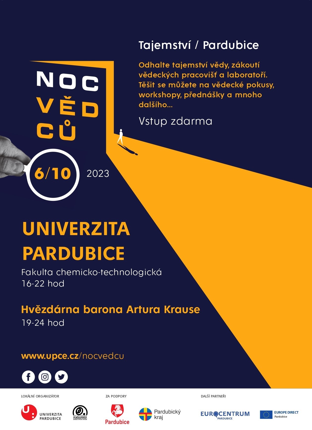Sledujte nás na speciálních stránkách Noc vědců na UPCE, sociálních sítích a na www.nocvedcu.cz