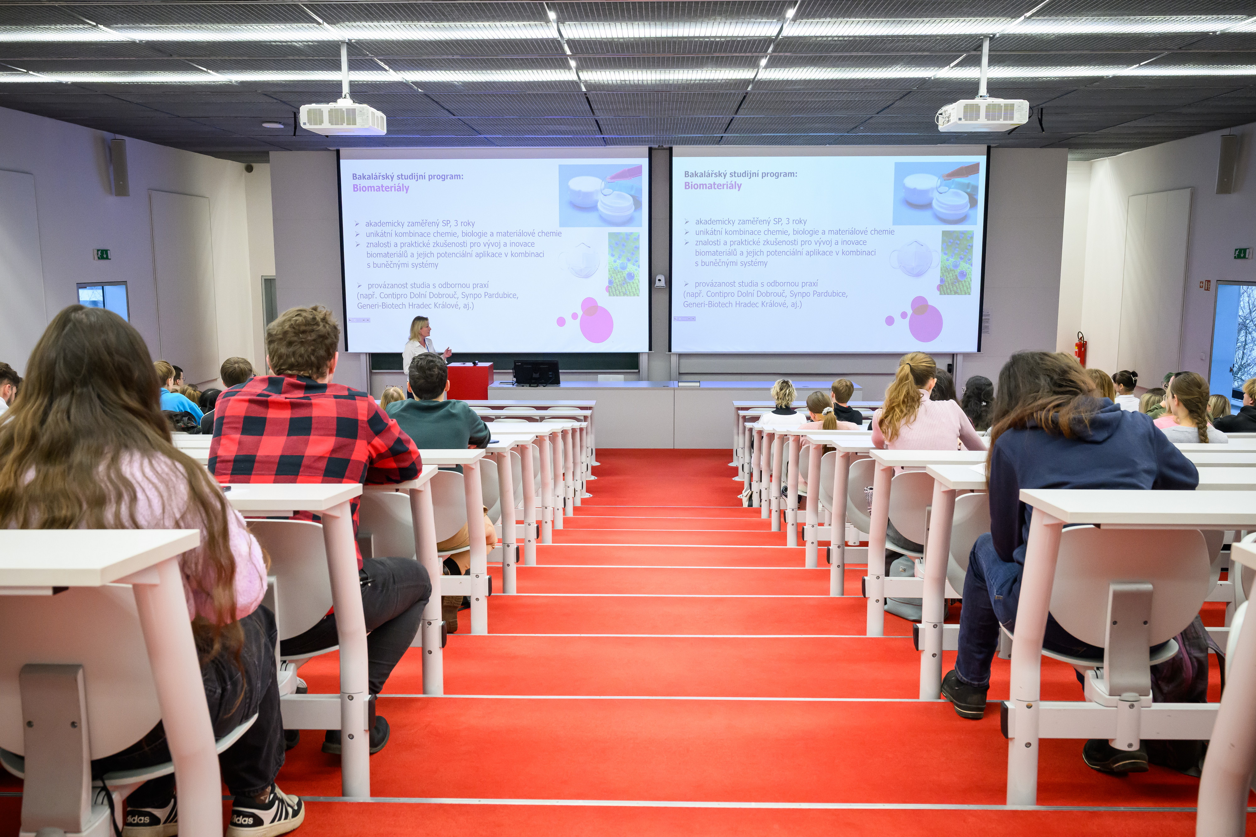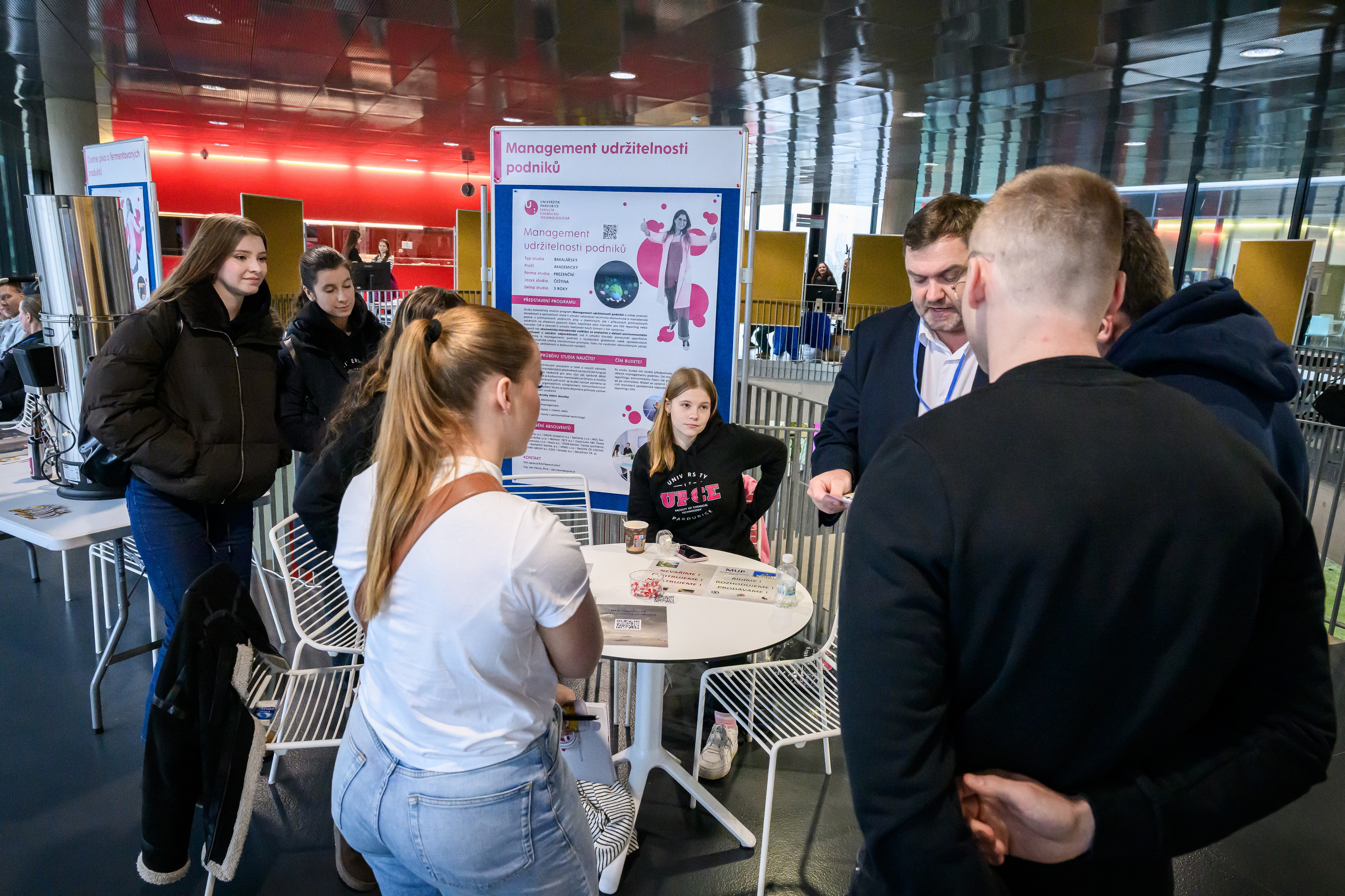 Program po oba dny zahájila paní proděkanka doc. Ing. Alena Komersová, Ph.D., která ve své úvodní přednášce v Posluchárně Jana Palacha seznámila návštěvníky s naší fakultou a nabídkou studijních programů pro akademický rok 2026/2027. Ještě před samotným začátkem přicházeli první návštěvníci do naší relax zóny a následné dotazy od budoucích studentů naznačily, že i o letošní ročník bude velký zájem.