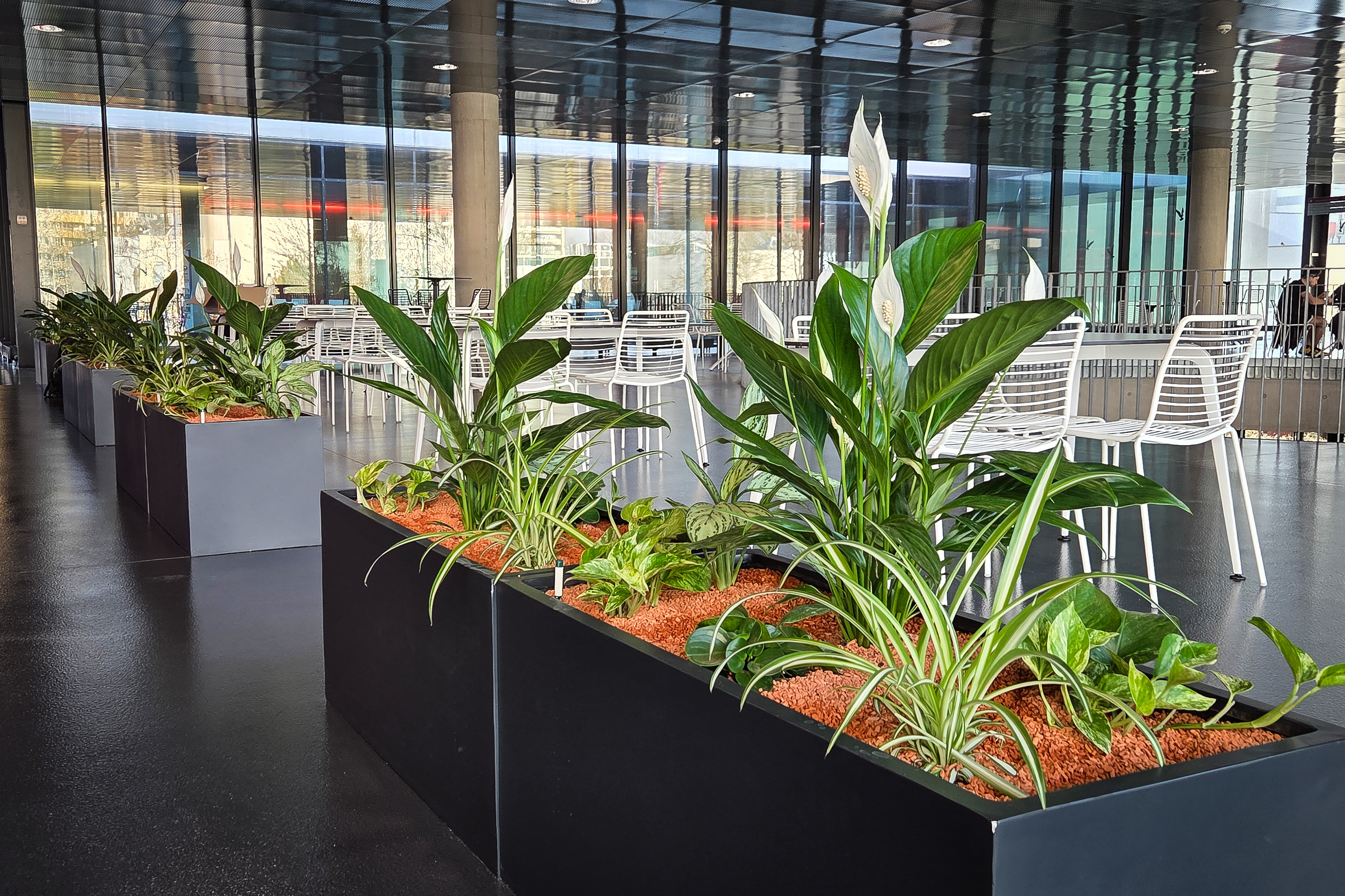 Jak jste si jistě mnozí všimli, do „relax zón“ pod schodištěm a před recepcí byly instalovány speciálně vyšlechtěné rostliny, které podle výzkumů vykazují zvýšený vliv na soustředění, ale i úspěšnost u zkoušek. Rostliny vznikly v rámci mezioborové spolupráce, a kromě schopnosti efektivně upravovat kvalitu ovzduší disponují i modifikovanými metabolickými drahami. Ty ovlivňují mikroklima způsobem, který může pozitivně působit na kognitivní funkce.